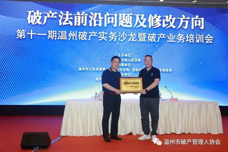 最后,温州市破产管理人协会会长周光与浙江六和(温州)律师事务所进行了第十二届温州破产实务沙龙承办方授牌仪式。