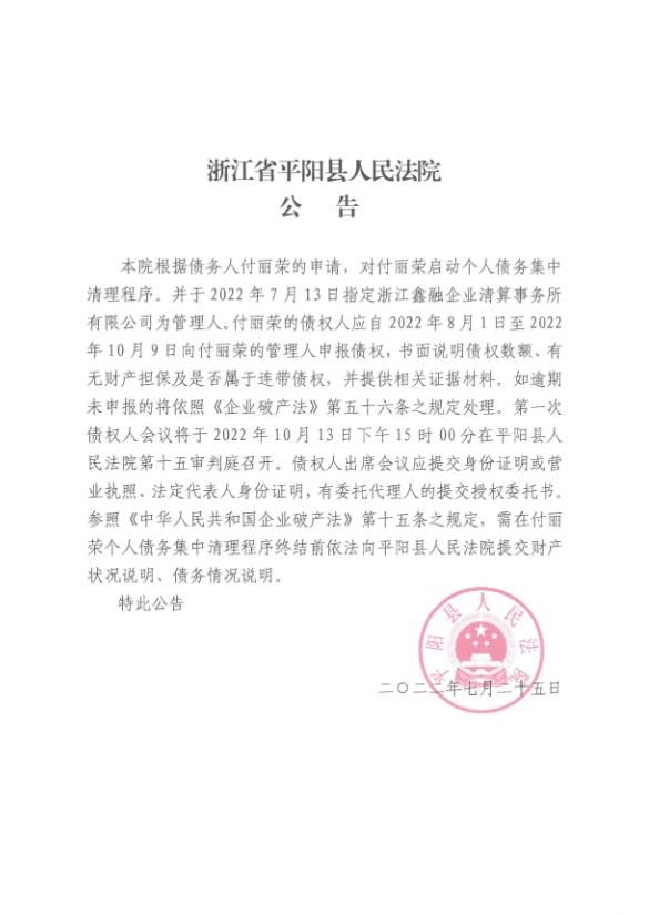 付丽荣个人债务集中清理