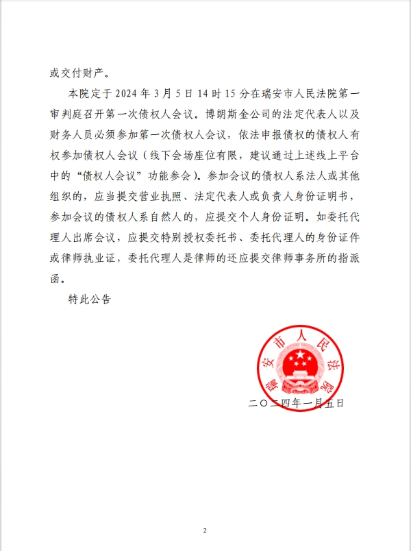 温州市博朗斯金五金有限公司破产清算公告