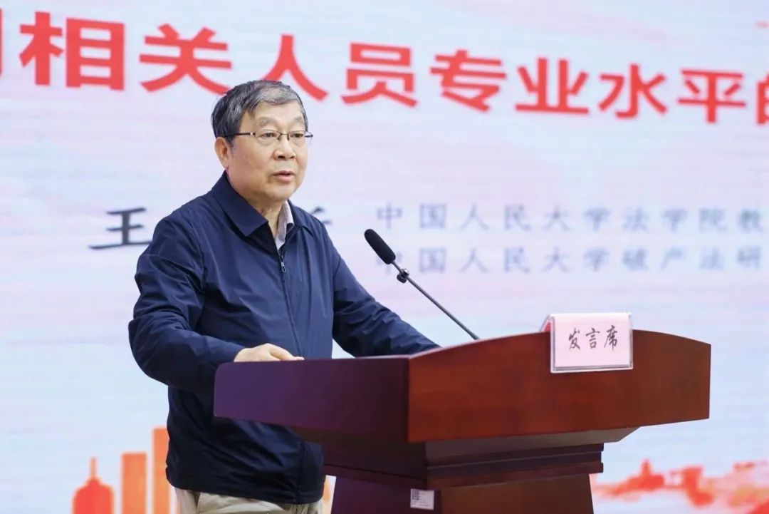 培训期间,中国人民大学法学院教授、中国人民大学破产法研究中心主任王欣新,中国政法大学民商经济法学院教授、中国法学会民法学研究会副会长李永军,中国人民大学法学院教授、北京市破产法学会会长徐阳光,最高法院民二庭三级高级法官郁琳分别为学员作《重整计划完成后的债权人清偿问题》《合同编通则司法解释解读》《债务人财产制度的具体问题》《破产审判的若干实务问题》主题授课。